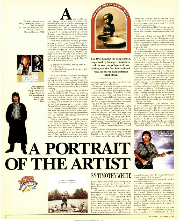 しかしながら今年は先日の記事で書いたように、オリヴィアさんから出生届と実際の出生時刻がずれた理由について種明かしがあった上に、本当のお誕生日が初めて公表されたソースにもたどり着くことができた。とある大変信頼できる筋から、ジョージの本当のお誕生日が初めて公式に出たという1992年の出版物をずばり教えていただいたのである。ビルボード誌1992年12月5日号。